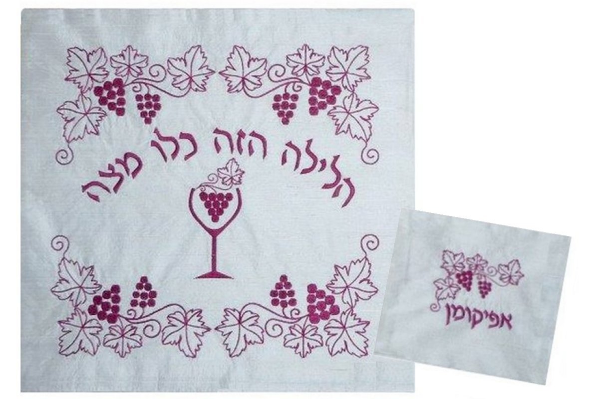 Challah and matzah covers are not only practical but make wonderful gifts. The covers below were all embroidered on silk with a cotton backing. Matzah covers have three pockets for use during the Seder.
